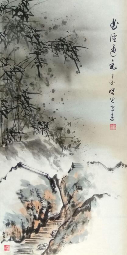 徐先生作品的创意之美,美在传承中得以升华。先生画竹独特,竹石共生。他借鉴古今技法,于四年前尝试“洒白法”创作雪竹和“春夏秋冬四条屏”;近两年又以“留白+矾水+洒白法”多种技法融会贯通,以求在传承中得到升华,将大自然中静态石头通过笔墨处理,点与划的对接,营造出“石与竹的动态之美,平衡之美”。