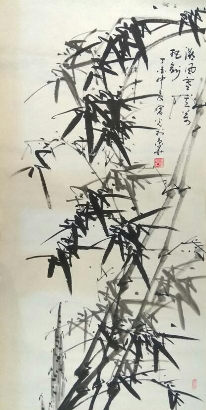 徐先生的笔墨之美,美在人与自然的完美和谐。欣赏徐先生作品,犹如走进一个“竹的世界”。先生笔下之竹,最为与众不同之处是继承传统手法又大胆融入现代元素,从而使画面呈现动态,呼之欲出。他认为书画创作之高雅在于其能够反映出人的精神、内心、灵魂和才情。笔墨挥洒过程中,文学修养与书画技能必须巧妙融合,方能有艺术之结晶。徐先生极为强调国画中书法功底的重要性。仔细阅读他的作品,你会发现一个特点“节勾”承上启下,必为重力所在。竹竿有节,每节自下而上,孔武有力;竹叶貌似随风摇曳,其实在疾风骤雨中保持对竹干的不离不弃。先生笔下之竹,不是自然竹的再现,是有感而发的诗题。透过画和诗,让人联想到作者的人品,竹子的贞节。寥寥几笔竹叶,简练几句诗题,倍感作品中蕴藏着深刻的思想、浓浓的情意。