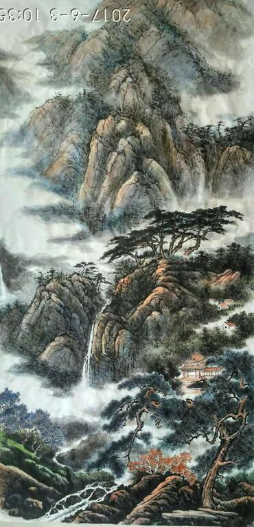在书画艺术的道路上,四十年来寻师访友勤学苦练,坚持不懈。尤其对中国山水国画更是情有独钟,作品曾多次参加省市书画大赛并获奖,受到专家们的肯定及广大书画爱好者的一直好评和赞誉。其风格正如“日照香炉生紫 烟,遥看瀑布挂前川。飞流直下三千尺,疑是银河落九天”之气概,深受市场.欢迎。