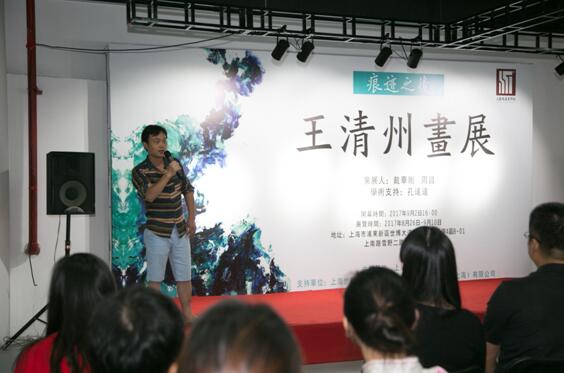 本次展览的主角王清州上台致辞,谈了自己的创作观念,由书法用笔转换到画面语言的组织,到“意象”的艺术理念,向嘉宾们分享了他的创作之道。