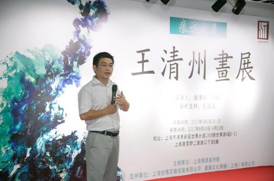 2017年8月26日,自王清州北京个展《道的状态》之后,上海展《痕迹之后》在上海博源美术馆开始它的第二站旅程。9月2日,本次展览在上海博源美术馆开幕,画家王清州,媒体人戴华刚、市场专家周昌,上海博源美术馆馆长黄瑞丰,在艺APP合伙人顾耀峰,还有前来捧场的各界友人共50余人出席了开幕式。本次展览邀请中国艺术品市场研究专家孔达达作为学术支持。 策展人戴华刚首先发言,他认为王清州的绘画结合中国的书法用笔,又融汇了西方绘画的表现方式,作品面目独树一帜,在同时期的画家群中脱颖而出。从本次展览,可以看到画家创作轨迹:从水墨到油画的多元面目。戴华刚还介绍了画家王清州未来的展览项目,从北京到上海,将会到南京、广州等地巡展。 策展人周昌则重点介绍了这次展览的规模,展览作品只有21幅却贵在精,囊括了画家的近三年的力作。而画家已经出版了5本画册,这在中青年画家中凸显成绩斐然。据悉,《痕迹之后-王清州个展》展至2017年9月10日。(周昌)