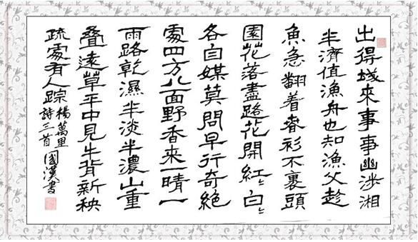 汪国汉,男,1941年1月生,汉族,安徽省绩溪县人,退休干部,号:孔雀坞山人。初中学历。艺术专长:书法,能书楷行草隶篆五体,尤以行草书见长。现为:联合国国际文化交流中心副主席,国际文艺促进联合会名誉会长,世界文艺交流中心首席导师,中国当代艺术协会主席,政协书画院副院长,中国五体书法研究会副会长 ,中国诗书画出版社社长,中国数字艺术馆长,中国国家书画院副院长,中国人民艺术博览馆副馆长,八一书画院名誉院长,中国书法美术家协名誉主席、英格兰皇家艺术资金会学术顾问,宋庄国际书画院终身院长,中国文艺家交流协会常务副主席兼秘书长,中国现代艺术研究会,中国书画名家研究会副理事长,中国书画学会副主席,中国书画收藏学会副会长,国际文艺界联合会主席团成员,香港中国书法家协会副主席。书法作品在国际上先后获:国际文艺界联合会最高奖第二届国际艺苑金圣奖,世界华人优秀创新成果国际金奖等十多次世界大奖,荣获世界文坛十大金牌功臣终身成就荣誉称号获得中国泰斗,孔子奖等八项终身成就奖。还获得特等奖,特别金奖多次。被联合国总部和教科文组织授予“当代师表”,“国际文艺泰斗”,“国际文艺十大传奇人物”和“百年文艺巨匠”终身成就荣誉称号。被英国皇家艺术研究院授予“世界文化名人,并进行艺术专访还出版专访特刊《世界文艺名家—汪国汉专辑》,被中南海诗书画院聘 特聘书画家并进行艺术专访和出版专访特刊。另出版有:《当代中国国学系列从丛书推介名家——汪国汉》,《中国收藏投资市场精品册。汪国汉》,《中国线装文库汪国汉作品集》和个性化邮票及个性化珍藏纪念邮册。