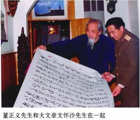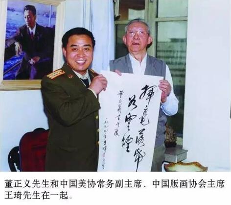 董正义不仅在书法,在绘画方面亦有独到之处,他的画李可染、启功、文怀沙、卓然……数十位严谨的书画大家打破常规为他的作品展题词写匾;40米长篆书卷《万寿图》、15×2米巨幅狂草书法《前后赤壁赋》一气呵成、苍劲有力,在中国美术馆一经展出便引起轰动,书坛前辈赠其四字“翰逸神飞”。