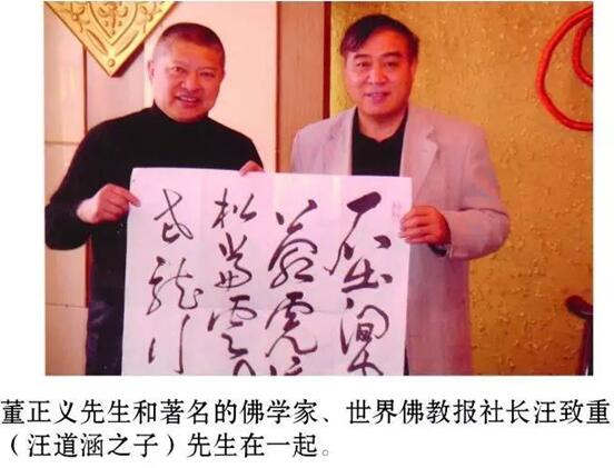 他笔下的观音画形象分明,活灵活现。他是武术爱好者,又是摄影专家,他的文笔特别好。他多才多艺,曾经发表新闻稿、照片、书法、绘画、诗词、散文等3000余篇(幅)。他做事认真执着,他是军人,长期从事军队政治和军事科学研究工作。转入地方之后由于担负工作的关系,进入宗教领域的研究,那个时候,他已经年过半百。这个年龄的人再转入一个陌生领域工作,已属难事,可是他竟能伏下身子去,对他主持工作的一个专项——佛和寺庙进行了深入的研究,他踏雪沐雨,风餐露宿,呕心沥血,历尽艰辛,走遍祖国的山山水水,游遍古刹名寺和遗址,查遍博物,图书、档案、资料馆,访遍知情人和专家学者,阅读记载寺庙的文献、图片、资料,经过慎重构思、10年苦心积累,3年释放写就,160万字研究著名寺院的巨制力作《中国百座名寺》。这本专著运用较为精炼的文字、精美的图片、精确的史料、客观的评说,,再现了中国佛教文化的博大精深和悠久历史,再现了高僧大德、佛教信众、佛家禅者和广大劳动者及专家学者创造寺庙的辉煌成就和智慧结晶。如此厚重的专著,更是难得,令人敬佩!近年来,董正义研究各大宗教,收获颇深,特别是研究佛学经典、佛教历史和寺院建筑美学、寺庙楹联、绘画、佛教尊圣及佛教教理仪轨等均取得丰硕成果,著述颇丰,还有150万字《中国道教百座名觀》待出版。今年,董正义先生应武当山道教协会邀请,住在武当山上采访考查五个月,为武当山撰写史志《中国武当山》书,约130万字,拍图片一万余张。他的作品震撼磅礴、气势恢宏,而当你屏气凝神静观其中的一笔一划,又给人以深刻的宁静与无尽的禅意。