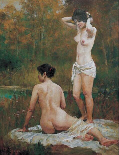 曹雕主题《女人体》油画作品《浴》70x95Cm市场收藏参考价16700元