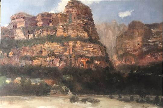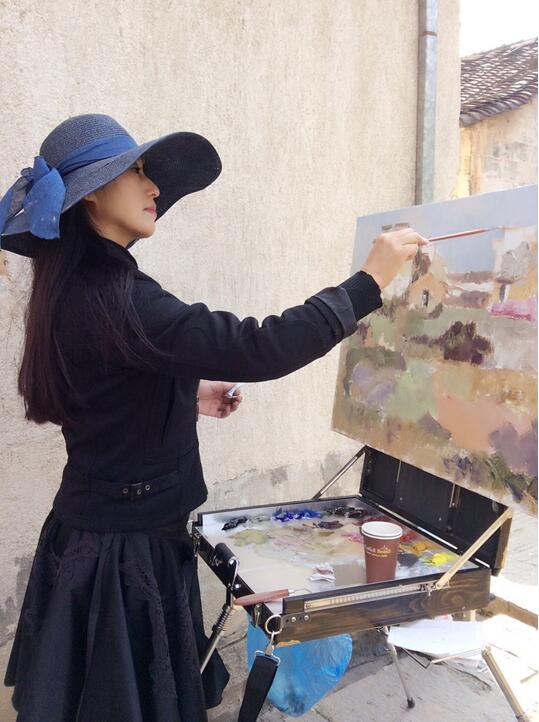 邵湘蓉为了方便写生,她特意买了一辆越野车,有一次去壶瓶山参加写生学习活动,她单独驾驶奔波300多公里,道路险峻,差点跌入悬崖,真的是有惊无险,来到写生基地时汗水早己湿透了衣服。在一起写生的著名画家陈和西、曲湘建、段江华、凯文、任传文等老师们都被她追求艺术的精神所深深感动。今年七月,她顶着烈日来到太行山写生,其作品《巍巍太行》气势磅礴,饱含着她对革命根据地的敬仰之情,作品无不展示着太行精神。邵湘蓉一个人在安徽写生二十多天,创作出了江南水乡的精美之作。