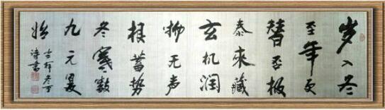 本人,虽未经名门高师惠教聪指,也未曾经专业科班名门专心深造研习,但习字临帖、摹写、读贴之习惯,已深深养成;特别是看帖、读贴犹如看激情小说和丰富热播之影剧,专心致志不受干扰,倾心领悟,故尔在研读“二王”行书帖,赵孟钚胁萏⒄虏荨⒀占颐泶峭靥⒉苋毫ヌ⒚总啦萏汀叭L梅ㄌ钡鹊仁保裥旮锌缌倨渚常蘼鄞颖史ā⑷》ā⒛ā⒄路ā⒓挤ǖ牟忌柚懈形虻骄�,营养博纳、受益匪浅,故尔形成如今这种书法字体的特质和态征,经参加国内数次书法大展赛小试牛刀、屡不失第;又因本人在国有大型企业任职,履行企业高级管理者职能,业务庞杂而忙乱,以对探究书法功底、书法趣味、书法意境、书法知识的颇厚兴趣,可谓是暇余涂鸦不偷懒,习帖练字不辍笔,笔耕尺素绢,黑润方寸格,行、草,隶,篆、楷体兼书,现代书法的特点和特征突出,尤其行楷和行草见长,笔墨凝重而厚实,枯、浓得当,字体秀气、飘逸洒脱;其硬笔书法也以行草、行楷见长,笔触灵动、苍劲俊雅、力透纸背。因而在业余书法写作与创作过程中(硬笔、毛笔),也都有收获: