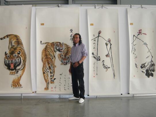 他笔下的虎风格独具、形神兼备、栩栩如生,有阳刚之气和呼之欲出之感,受到国内外同行的高度评价,画虎有其特点,能自成风格,构图严谨,生动有趣,以后必有大作为!