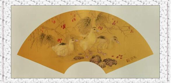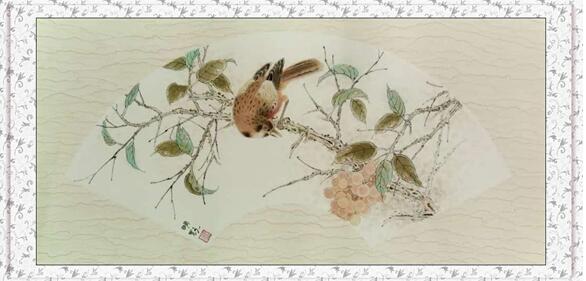 除了虎的题材之外,花鸟画显然也是画家陈明显老师的最爱。他最喜欢画的题材是花鸟,看他的花鸟画,会有满目绚烂,满堂生香的感觉。他喜欢用写实色彩来描写物象,让人觉得爽快,喜兴。更有民间艺术中那种单纯,平朴,爽朗的艺术性格。