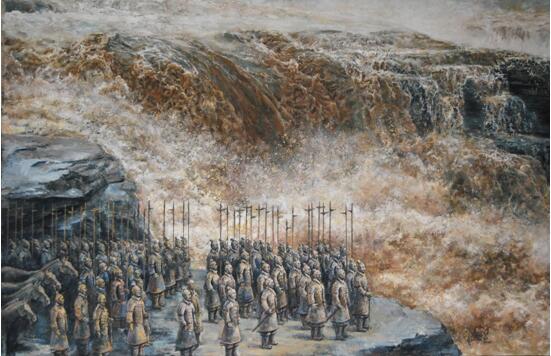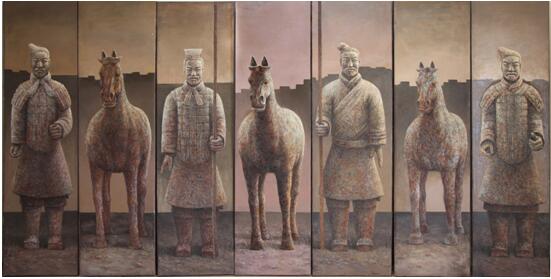 2008年 创作油画兵马俑系列《回首》、《筑城》等