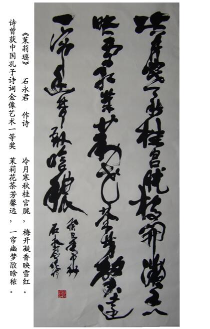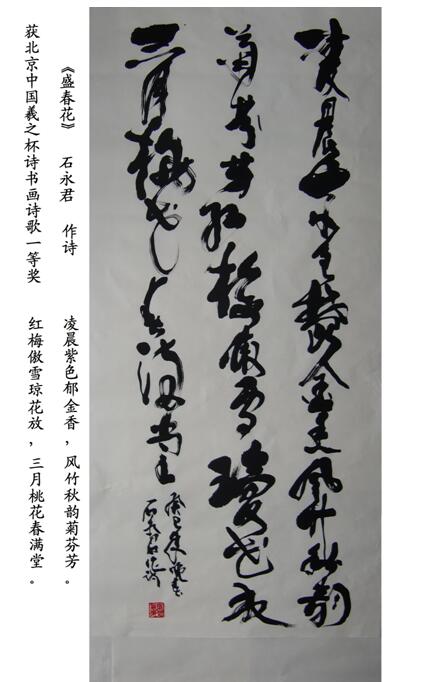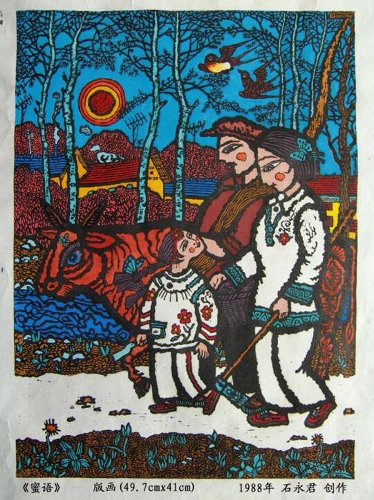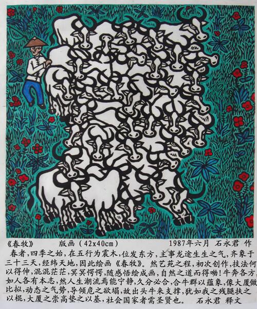 石永君1963年7月生,清华大学美术学院颁发入学通知,从事书画艺术创作,爱道辩证真理为大学,是位多才多艺的国学研究者,喜欢《道德经》《心经》《圣经》《黄帝内经》,曾受获日本国版画教育金奖李德甲先生辅导,1987年6月创作版画处女座《春牧》参展中华人民共和国文化部北京市人民政府主办第一届中国艺术节现代民间美术展览,发刊9月6日中国文化报,受习近平之父习仲勋中央委员长版画泰斗赞叹!《蜜语》参展国家主席胡锦涛开中央建设新农村会议,中央电视台第七套农业栏目组举办,中国美术家协会指导“描绘新农村--全国美术作品巡展获三等奖被收藏。