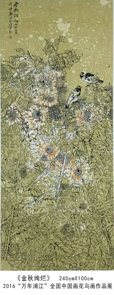 "Golden autumn gorgeous" was selected by the Chinese Artists Association to hold the exhibition of "2016 thousand years of Pujiang" national Chinese painting flower and bird painting exhibition.