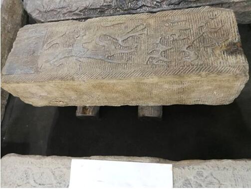 石尺寸:113*40cm。原石共计一十三字译文:杜君公内宅,千岁不废(发通假为废),大利宜子。画像是墓主人(杜诗)乘应龙腾飞驾雾冲天,右边图是四个大小羽人跪拜迎接主人的到来。寓意画面主人乘龙奔向仙境,追求人间升仙境界。四个羽人寓意子子孙孙传万代。