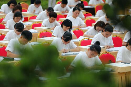 9月22日下午,来自各地的数百名信众齐聚等慈禅寺天王殿广场,共同参加“月印千江”千人抄经启动仪式,大众同书,体验禅悦法喜。