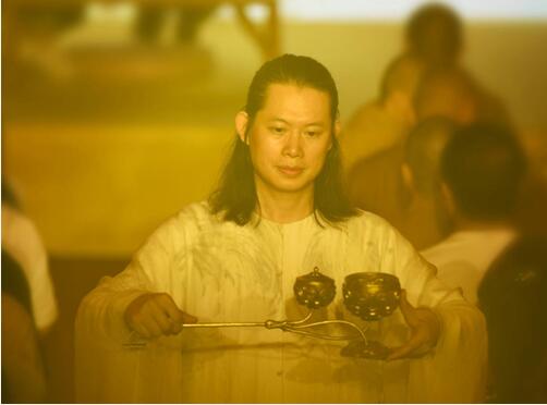 香学艺术家、太月香学罗子杰手持“唐鎏金莲花长柄行炉”行中华香礼