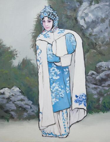 “孟丽作品之中国戏曲”这一题目吸引了很多业内人士和青年艺术家的反响,笔者带着特别多地关注走访了青年油画艺术家孟丽。