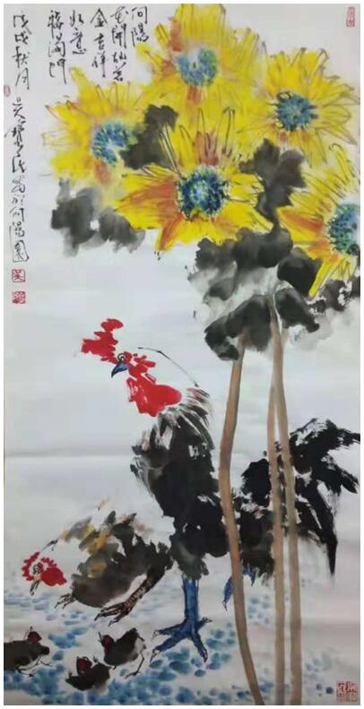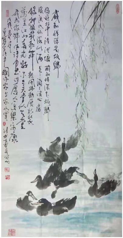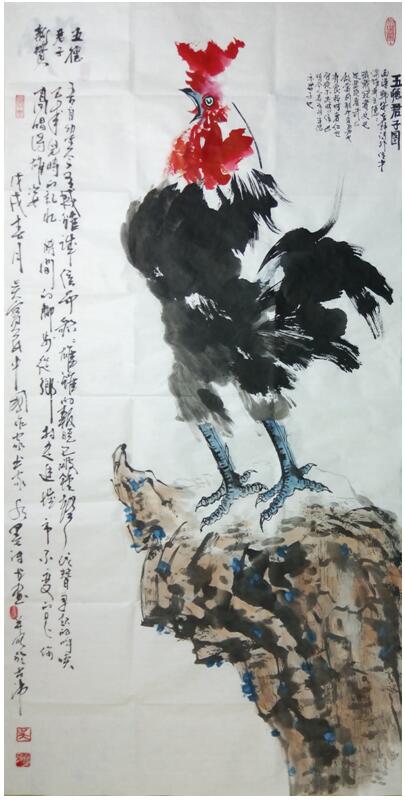 Mr. Wu Baomin has collected calligraphy and paintings, flowers and birds, figures, landscapes and so on. His character is like a human being, soft and rigid, free and easy to play. Although the chicken, especially the cock, in his flower and bird paintings belongs to the independent branch of Chinese traditional painting, his paintings are rare, exaggerated in shape, bold and powerful in line, and charming in ink. Looking at the chicken picture, the chicken feet are vigorous, the beak is firm, the breast is crowing, strong and bold, the eyes are torch, the crown is flame; and the flag, very able to change hope, worthy of its bright messenger; and the combination of good luck and Italy, good luck, good luck and sentiment, its "five virtues gentleman" on the paper, reflects the unique Chinese nation. Spiritual and cultural art forms. The ducks he painted are vivid and vivid, with meritorious writing and fresh plumage, looking forward to life: the pond is clear and ripple, the lotus flowers are beautiful, the lotus leaves are covered, the ink is full, three or two ducks float between the lotus leaves, occasionally "chirp" a few sounds, leisurely swimming. What's more valuable is that he expresses his feelings by means of things: "not seeing the old people in his hometown, but hearing the duck singing pool in the lotus". It's his nostalgia for his hometown, his yearning for his relatives and friends, and his deep nostalgia. "Hometown Feelings" series, "Duck Singing Lotus Pool" series, a series of articles, hundreds of sketches smear, all scenarios blend, this is Mr. Wu Baomin's love of his hometown, one plant, one stone, one water. His landscape paintings, including his pastoral landscapes, paintings in poetry, paintings in poetry, poetry, calligraphy and painting into one, also expresses his deep love for his hometown to the motherland. In 2017 and 2018, his six works, such as "Five Virtues Gentlemen Tu", "Duck Singing Lotus Pool" and "Sharing Home", have been selected and collected by CCTV Calligraphy and Painting Channel, Chinese Multi-ethnic Writers Association, Chinese Writers'Academy of Calligraphy and Painting.