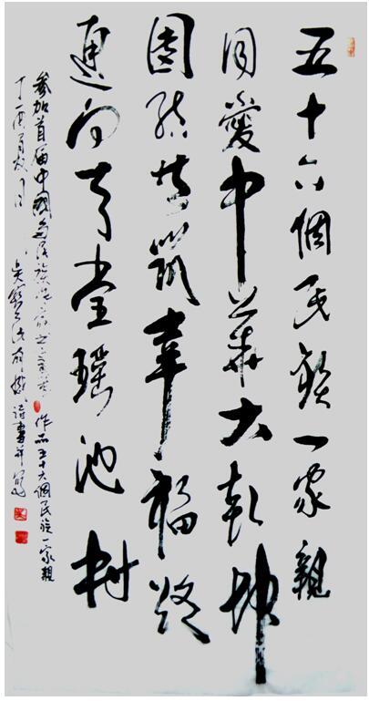In 2010, the Chinese painting Xiongfeng was awarded the Excellent Award by the Organizing Committee of the 16th Asian Contemporary Art Exhibition, and in the same year, the Chinese Popular Literature Research Society awarded the Lifelong Achievement Award for Literature and Art. In recent years, calligraphy and painting works have gradually formed their own series, such as "Duck Singing Lotus Pool", "Hometown Feelings", "Dragon and Phoenix Lotus", "Chibi Fantasy", "Taihang Fantasy" and idyllic landscapes, which have won awards from the National Artists Association, the Chinese Painters Association, and many other organizing committees. In 2014 and 2015, "Hometown Feelings" and "Dragon, Phoenix and Lotus" series won "Innovation Award" by Writer's Newspaper, Shenzhou Magazine and other committees. In the past two years of 2017 and 2018, six works, such as Calligraphy and Painting "Fifty-six Ethnic Families", "Duck Singing Lotus Pool", "Sharing Home", have been selected and exhibited by CCTV Calligraphy and Painting Channel, Chinese Association of Multinational Writers, Chinese Writers'Calligraphy and Painting Academy and other organizations. Literary works are included in the exhibition hall of representative works of contemporary Chinese writers, and slightly in the Dictionary of Members of the Chinese Writers Association. Calligraphy and paintings are collected by state organs, art galleries, Hong Kong and Macao, and friends from home and abroad.