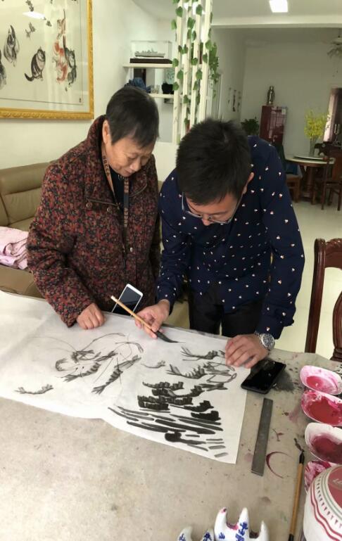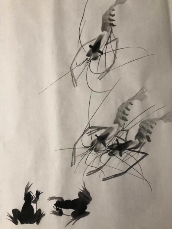 朱思霖的画,经恩师齐丽霞及齐白石曾孙齐君山、齐江山等独门秘授,得齐派书、画艺术依伯之真传,其作品全面继承和传承了齐派艺术的真諦及精髓。充分的领悟和把握了齐派艺术的思想特质及笔墨技巧。他勤奋善学,谦虚求进,在艺术求学生涯中,通过不断地写生和反复揣摩研究,经他笔下绘出的虾、蛙、蟹等,无不侵透着齐派艺术的笔墨韵味。他把具有深厚功底的书法巧妙地运用到画上,使其作品又平添了个人追求的审美特质所产生的书法与绘画相得益彰、珠联璧合的相互映衬的韵致。