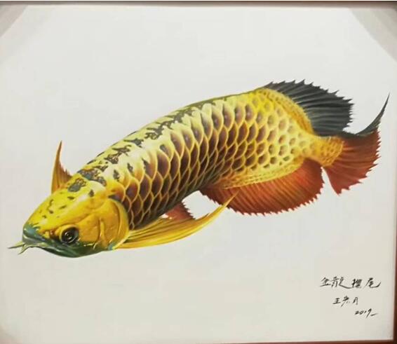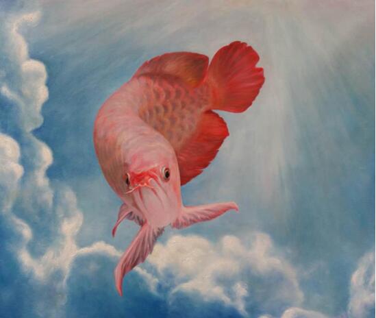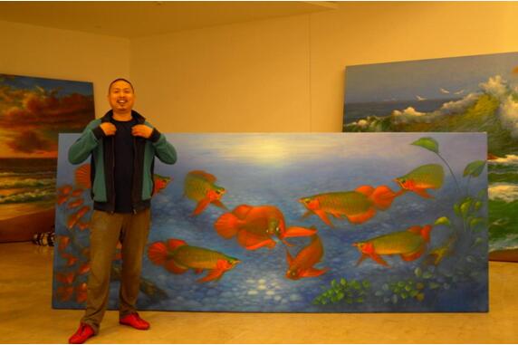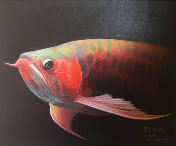 画家笔下的金龙鱼充满神奇,一个专业油画家创作写实画作静物和静态的写实不是什么难度,而对于动物来说其动态和神韵画家很难把准,尤其是鱼类动物,它在水里浮游摆动,王宏月画家为突破这些难点,用二年时间观察、深探其究,把准金龙鱼的"生活规律"和各种神态与动向,用扎实绘画功底和写实技法,使创作出金龙鱼栩栩如生,毫不夸张的说王宏月笔下的金龙鱼静之有神、动者灵魂交替,简直把画家情感与灵魂融合与金龙鱼,称之"天人合一"、美的化身,赋予了它的魅力无限、真龙再现。
