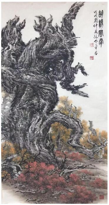 I looked at Zhang Jieyu while rubbing Populus euphratica branches like clanking iron bones. My heart was filled with infinite emotion. A man who has experienced so many hardships, but does not lose his childlike heart, is only grateful for life, always grateful for others, full of love for life, infinite loyalty to the motherland, and strive for the best in art. Isn't it a wise man who lives in poverty without moving, lives in wealth without arrogance, never changes his happiness, never changes his ambition, and always admires only the noble and beautiful things? I believe that he devoted so much enthusiasm and energy to the creation of Euphorbia euphratica, it must be that Euphorbia euphratica forest in the desert aroused his resonance from the depths of his soul. In his inscription, he wrote: "The indomitable spirit of Populus euphratica deeply shocked my soul. I forgetted food for it, and mingled my life with his endless entanglement and cast it together. Countless mornings and nights, year after year like water, I and Populus euphratica indissoluble, dance with the same language. Yes, "eulogizing the poplar" is actually Zhang Jieyu's autobiography, but that is the only way, it is so personalized, every tree seems to be a part of his life, a figure. Mad songs, great sighs, long howls, low returns and silence are all wonderful chapters of life's enthusiasm. "Whoever exists will live forever."