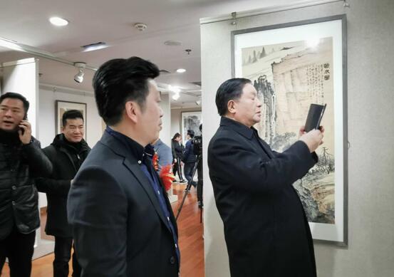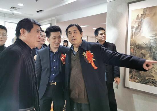 潘文良陪同,中央国家机关美术家协会主席王阔海、副主席滕墨之参观书画展。