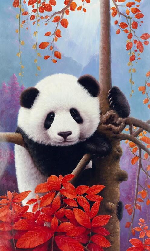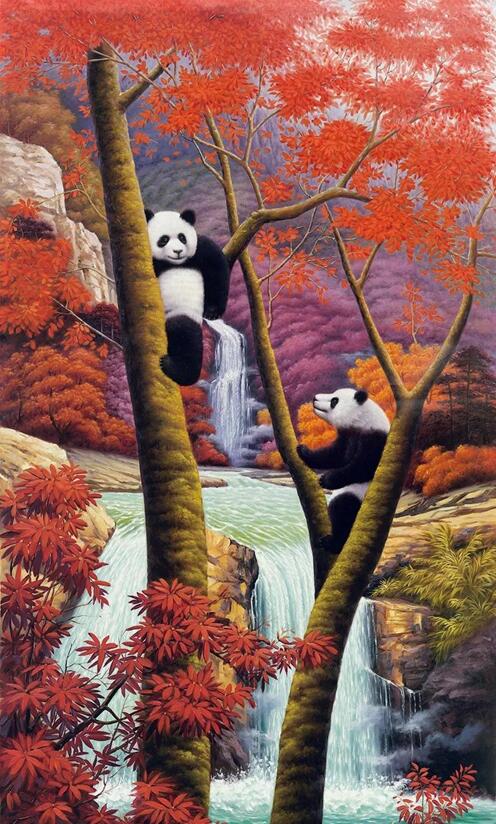 名称:国画 《九寨天堂国宝家园》