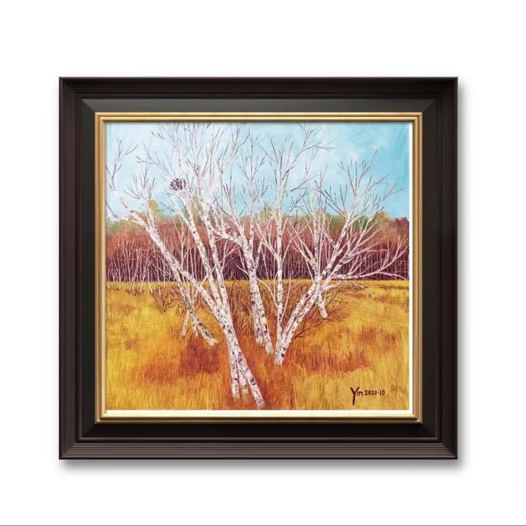Wang Yuming visited Saihanba in October 2021, braved the wind and snow, along the path that President has walked, and painted it with deep affection. The work fully showcases the national forest park that two generations of Chinese forestry workers have cultivated with their diligent hands on a 1 million acre wasteland, benefiting future generations.
