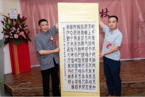 汪钟鸣向来宾介绍书法作品