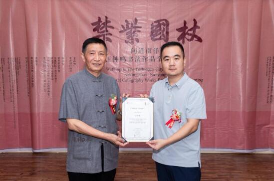 南洋理工大学华裔馆馆长罗必明向汪钟鸣颁发华裔馆收藏证书