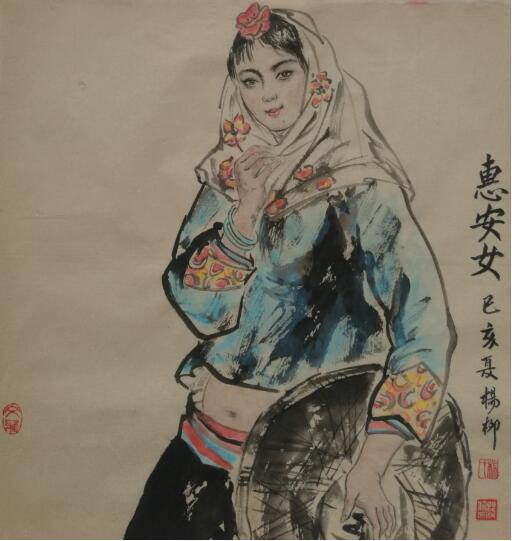 综观杨柳的一系列人物画,无论是古典人物,还是现代人物,都彰显出形肖神扬,意态天然,着力于真情实感,以工笔兼写意的手法塑造人物形象,表情细节处理的非常细致入微。包括姿态的刻画和互映,他运用洒脱而简洁的笔墨,生动地表现出人物的神韵,从而使人物形神并举,营造了既有中国传统人物画的韵味,又具有现代人欣赏的形式。