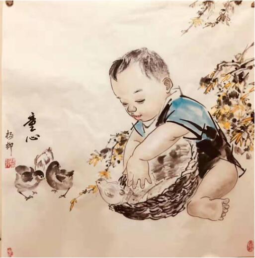 如作品《童心》是一幅意境优美,充满童真童趣的生活气息,画面清新质朴,色彩鲜明,给人一种赏心悦目之感。勾勒出了浓烈的现代艺术氛围。既传承了传统创作技法,又融入了现代写意的技巧,使作品充满灵性和艺术的张力。