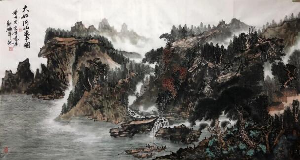 勤瀚主席的画作以山水画为主,他深受李可染的影响,强调“意境超越形象”的创作理念,力求在表现山水的同时,表达出内心的情感和感悟。他的画作充满了诗意和哲理,观者可以以从中领略到中国传统文化的深邃魅力。