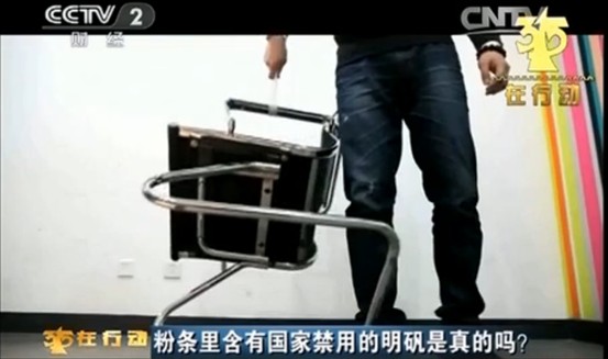 【图片截自央视“3.15在行动”:明矾粉条拎起15公斤重物】