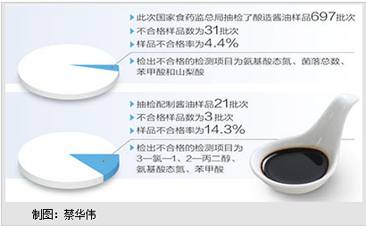 日前,国家食药监总局发布食品抽检信息,配制酱油不合格率达14.3%,是此次抽检产品中不合格率最高的产品,不合格原因主要是微生物超标和超剂量使用食品添加剂。