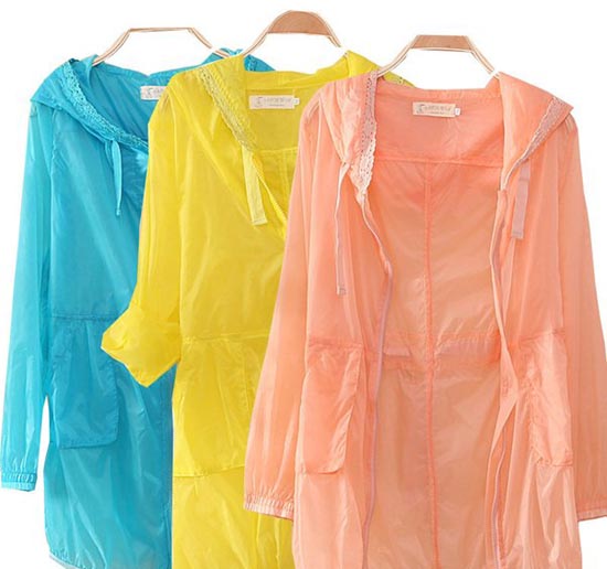 随后,记者走访省会市场发现,不少商家都将防晒衣挂在店面显眼的位置。虽然价位和款式有所不同,但记者发现,几乎所有的防晒衣都是浅色透明的,很多防晒服更像一款时尚的雨衣。“这是今年的‘潮’品,卖得很不错,现在颜色已经不全了。”青园街一家服装店的老板告诉记者,没想到今年防晒衣这么火。