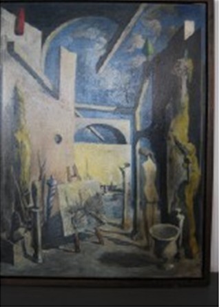 艺术宫殿对于艺术家的吸引力是毋庸置疑的,雷米·艾融(RemyAron)把对“黄金宫”的丰富情感寄托在《威尼斯之梦》中,用不再重现现实的艺术手法来营造一种与现实相似却又完全不同的画面,这个奇异的世界正是画家心中的艺术宫殿。这幅作品中建筑物的背景向上伸展,与画面前方的天空相呼应。湛蓝色的天空下的建筑物看似杂乱,实际上却有条不紊地组织在一起,形成强烈的节奏感。这种以主观再现自然为目标的艺术语言在雷米·艾融(RemyAron)手中成为创造幻象的工具,也是画家把对威尼斯的感受描述出来的最好载体。