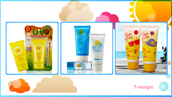 一走进七色花公司的实验室里,就看到各式各样的防晒用品,有清新的蓝白色包装的莱仕防晒套装、奇异果嫩白防晒乳!还有魅力密码美白防晒系列等防晒护肤品!每一种产品的面前都围绕了许多7-magic王国里的少女们,她们在脸上、手臂上、脖子上轻轻涂抹着防晒品。你看,外面的阳光多毒啊,可是涂好防晒品的少女们甚至没有打起遮阳伞,就这样手挽着手,笑着闹着走出了实验室的大门。