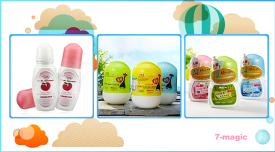 少女把一个色彩缤纷,圆柱形的小瓶子放在了我的手上。原来秘密就是这个小瓶子吗?仔细一看,原来是香体露啊!不同的7-magic女孩拿来了不同的香体露,有散发着樱花味道的樱花走珠香体露,还有水果清香的清凉滋润走珠香体露,可爱的蜜蜜走珠香体露和充满着清香的夏日香气止汗香体露。甚至还有专为男士准备的男士走珠香体露呢!