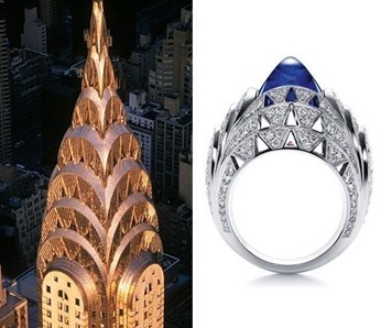 海瑞温斯顿SKYSCRAPER蓝宝戒指VS克莱斯勒大厦