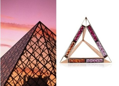 卢浮宫,是世界上最古老、最大、最著名的博物馆之一。不说它收藏着的那些让世人震撼的伟大作品,单其建筑风格,就充满了浓郁的法国古典主义色彩。值得一提的是,卢浮宫正门入口处的透明金字塔建筑是美籍华裔建筑师贝聿铭的杰作。EUPHORIAOFLIGHTS光之韵三角戒指的灵感,正是来源于此。标新立异地摒弃了圆弧形的传统设计,用三角体勾勒出戒指的轮廓,展现力学的刚柔并济,戒指亦充满立体感。通体玫瑰金的戒指主体上,呈平面三角形的剖面镶嵌有桃红、浅紫、金黄三色的小粒宝石,勾勒出卢浮宫正门前璀璨夜景。