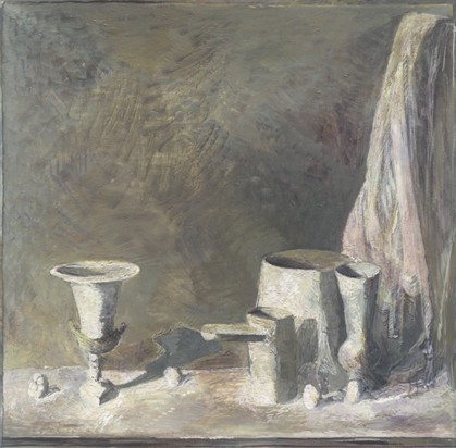 《布》是雷米艾融Remy Aron颇为满意的一幅空间派静物画作品,整幅画中雷米艾融Remy Aron营造出了一种“窗口”视觉,独立的高脚陶罐与其他三个陶罐构成两个空间,但后面的布将这两个空间融合起来,柔和的线条和光影折射创造出了四度空间的效果。这幅画完美的诠释了雷米艾融Remy Aron想要表达出的空间经过几何分割后再次融合成一个空间的艺术内涵,成为雷米艾融Remy Aron的一幅得意之作。