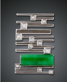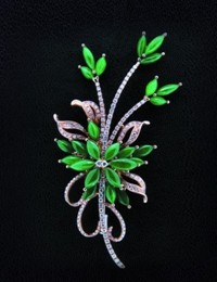 在该次拍卖会上,巴黎美爵艺术基金MATZO PARIS ART FUND亮相的多款翡翠均为翡翠中的极品。有一款主石为翡翠绿色辅石为钻石的顶级翡翠胸针尤为闪眼。其钻石级别为SI/IJ。贵金属材质是18K玫瑰金。产品总重13.23克。彩色18K金的融入使得钻石和翡翠更加光彩夺目,爪镶的镶嵌更加突显钻石璀璨,翡翠的随型组合设计把翡翠的典雅高贵充分展示,而这样的胸针仅此一枚,十分值得收藏。