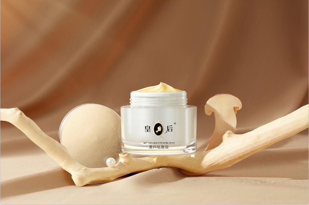 皇后牌美白祛斑膏选用多种东方护肤成分,包括松茸精华(松口蘑提取物)和三七精华(三七总皂苷),并添加了凝血酸(传明酸)、辅酶Q10(泛醌)、水解珍珠和牛油果树果脂等现代护肤科技成分。