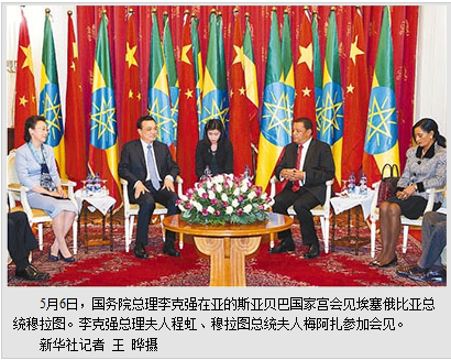 本报亚的斯亚贝巴5月6日电 (记者吴乐珺、倪涛)国务院总理李克强当地时间6日上午在亚的斯亚贝巴国家宫会见埃塞俄比亚总统穆拉图。