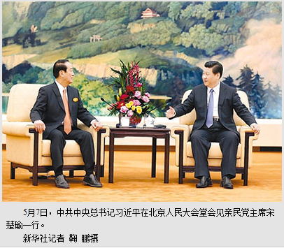 会见中,习近平积极评价宋楚瑜和亲民党在推动两岸关系实现历史性转折中所发挥的重要作用。希望亲民党坚持一个中国立场,继续反对“台独”分裂图谋,同台湾各界人士一道,坚定维护两岸关系和平发展大局,不断增进中华民族整体利益。