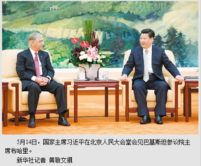 本报北京5月14日电 (记者李伟红)国家主席习近平14日在人民大会堂会见巴基斯坦参议院主席布哈里。