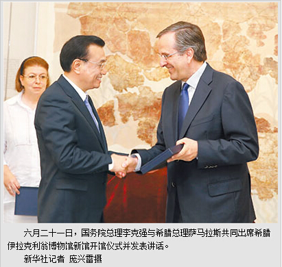 本报希腊伊拉克利翁6月21日电 (记者吴乐珺、吴刚)国务院总理李克强21日上午与希腊总理萨马拉斯共同出席希腊伊拉克利翁博物馆新馆开馆仪式并发表讲话。