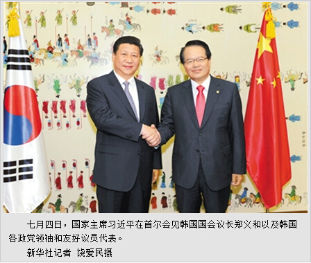 本报首尔7月4日电 (记者杜尚泽、万宇)国家主席习近平4日在首尔会见韩国国会议长郑义和以及韩国各政党领袖和友好议员代表。