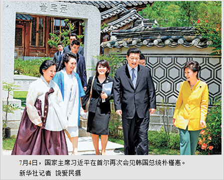 本报首尔7月4日电 (记者杜尚泽、万宇)国家主席习近平4日在首尔再次会见韩国总统朴槿惠。